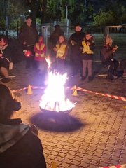 Am 11. November 2025 fand unser St. Martins-Fest statt. Das Schulgebäude blieb diesmal leer, denn das Fest zog sich durch das Freie: Das Fest begann mit dem Laternenlauf. Die selbst gebastelten Laternen leuchteten eindrucksvoll. Begleitet von St. Martins- und Laternenliedern sowie Begleitfackeln, die eine warme, feierliche Atmosphäre schufen, liefen wir durch das dunkle Pfungstadt.