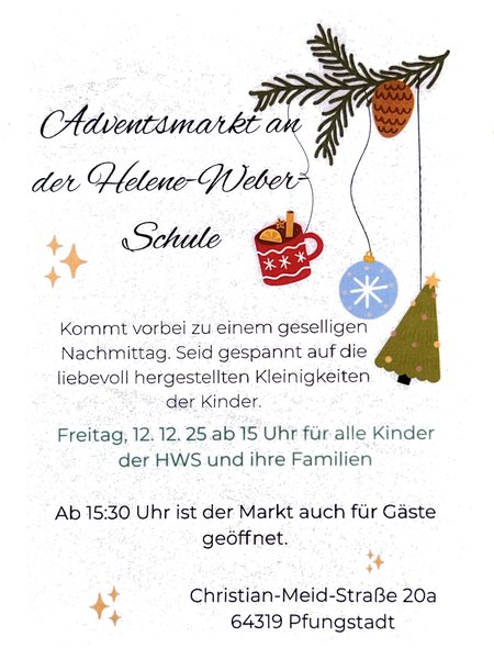 In der Vorweihnachtszeit lädt die Helene-Weber-Schule herzlich zum Adventsmarkt ein.