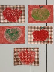 Im Kunstunterricht lassen wir unserer Kreativität freien Lauf. Wir beobachten Herbstfarben und lassen sie in Apfel-Motiven auf Papier erscheinen. Wir gestalten auch dekorative Apfelarbeiten für den Herbst: bunte Fensterbilder oder Rasseln.